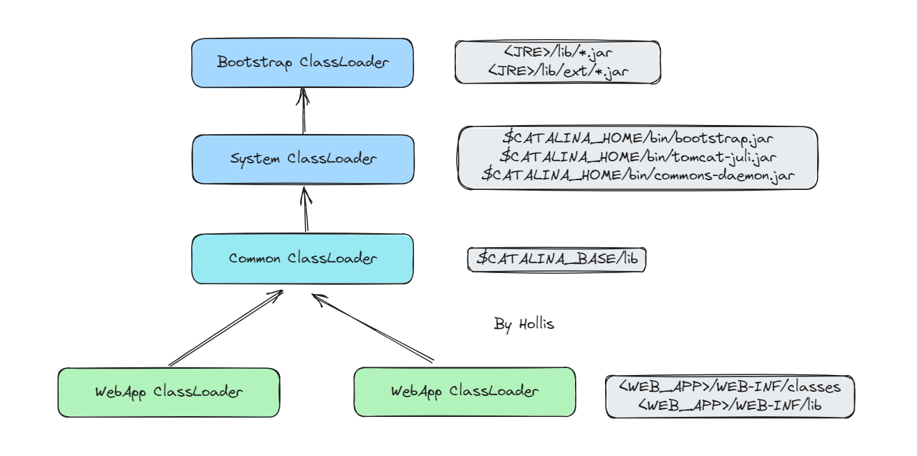 Web应用程序类加载器(Webapp Class Loader): 每个Web应用程序都有一个独立的Web应用程序类加载器,负责加载该Web应用程序的类和资源。它从$CATALINA_HOME/webapps/