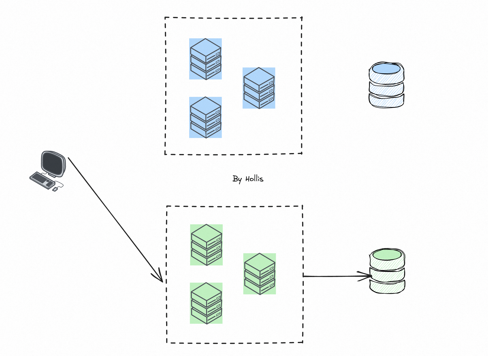 蓝绿部署是一种在部署新版本时,准备两套完全相同的生产环境,称为蓝环境(Blue Environment)和绿环境(Green Environment)。初始状态下,用户的请求都会被路由到蓝环境,而绿环境处于闲置状态。