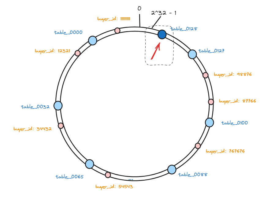 hash(table_0000)%2^32、hash(table_0001)%2^32、hash(table_0002)%2^32 .... hash(table_0127)%2^32