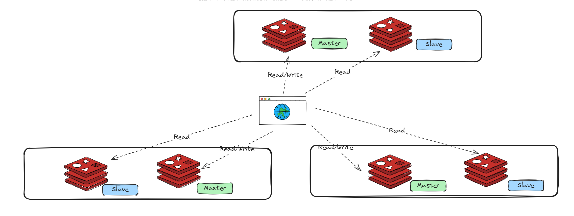 主从复制是Redis最简单的集群模式。这个模式主要是为了解决单点故障的问题,所以将数据复制多个副本中,这样即使有一台服务器出现故障,其他服务器依然可以继续提供服务。