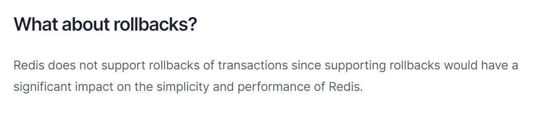 在Redis的官网文档中明确的提到过,不支持回滚:https://redis.io/docs/interact/transactions/