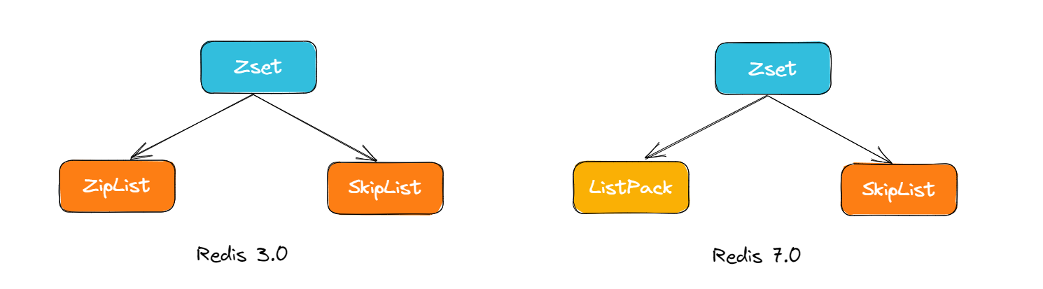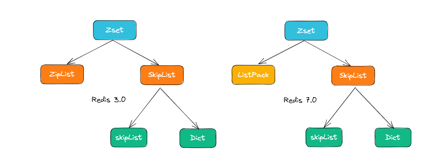 Redis中的ZSet在实现中,有多种结构,大类的话有两种,分别是ziplist(压缩列表)和skiplist(跳跃表),但是这只是以前,在Redis 5.0中新增了一个listpack(紧凑列表)的数据结构,这种数据结构就是为了替代ziplist的,而在之后Redis 7.0的发布中,在Zset的实现中,已经彻底不再使用zipList了。