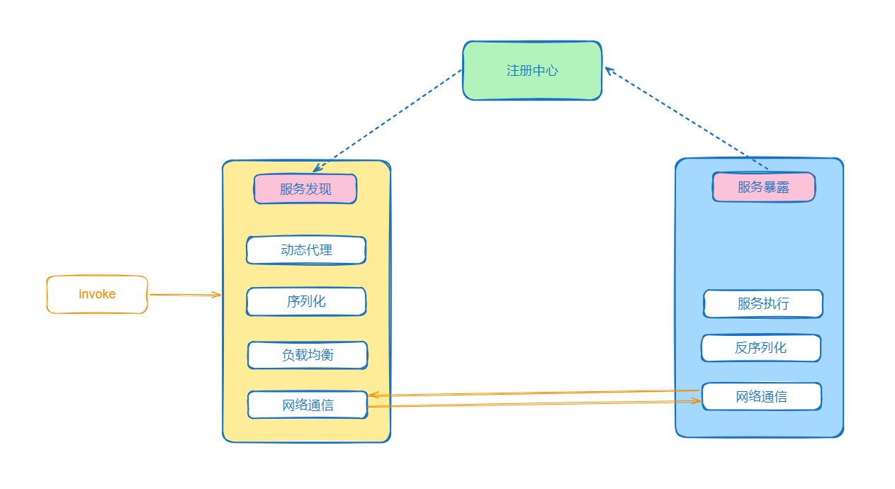 远程服务执行,当客户端发起远程调用后,服务提供方接收到请求后,会根据请求中的服务接口名和方法名,找到对应的实现类和方法,并将请求消息反序列化成参数列表,最终调用服务实现类的方法,并将执行结果序列化成响应消息返回给客户端。