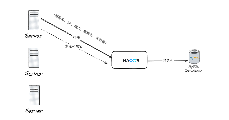 服务注册时发生在服务实例(如订单服务)启动时,通过Nacos客户端向Nacos Server发送注册请求,包含服务名、IP、端口、集群名、元数据等信息。
