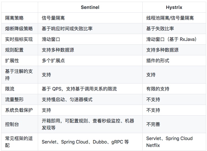 上图是Sentinel的文档中,关于Sentinel-与-Hystrix-的对比。详情地址:https://github.com/alibaba/Sentinel/wiki/Sentinel-与-Hystrix-的对比
