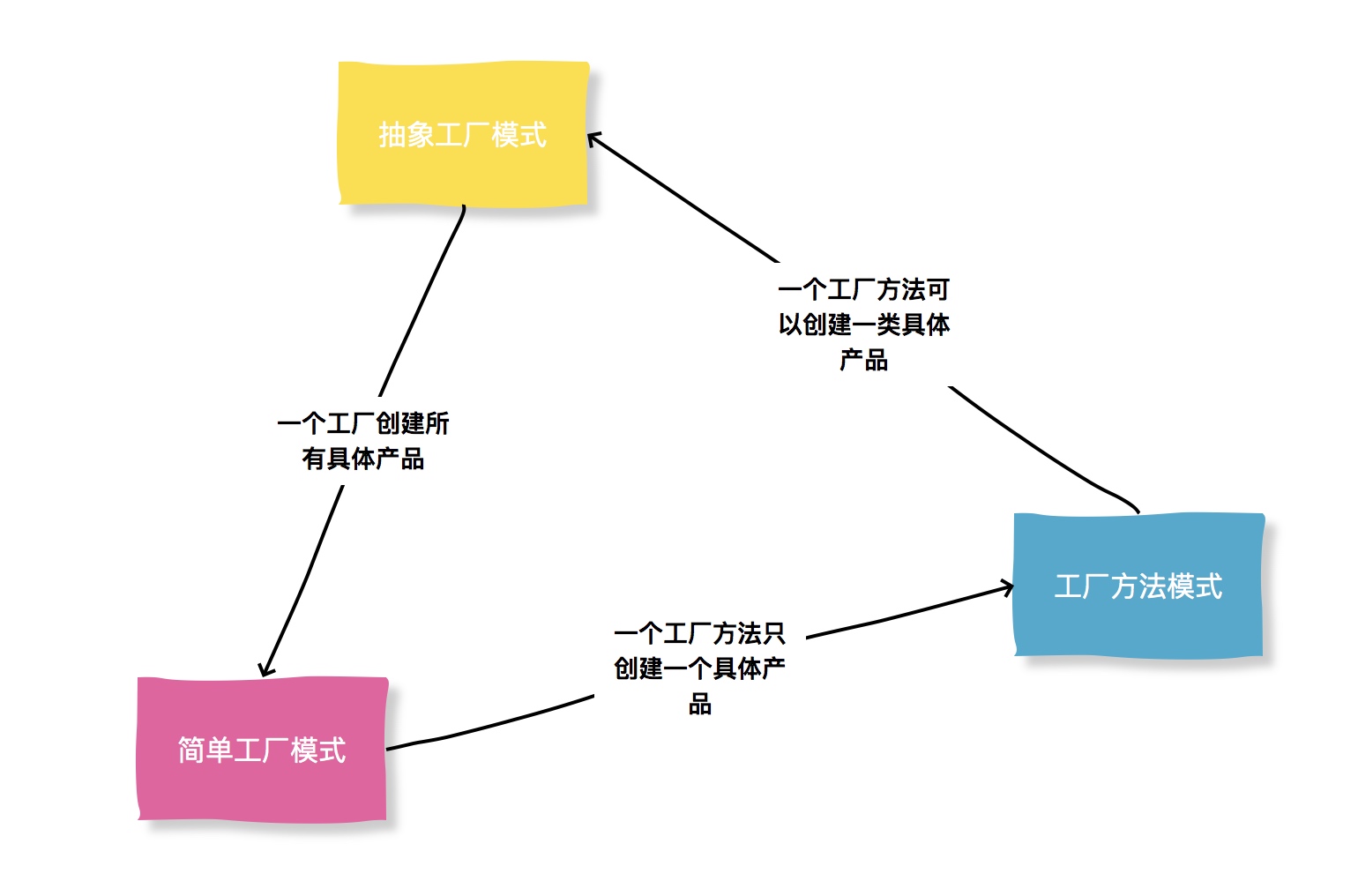 工厂模式有三种,分别是简单工厂模式、工厂方法模式、抽象工厂模式。三种模式从前到后越来越抽象,也更具有一般性。