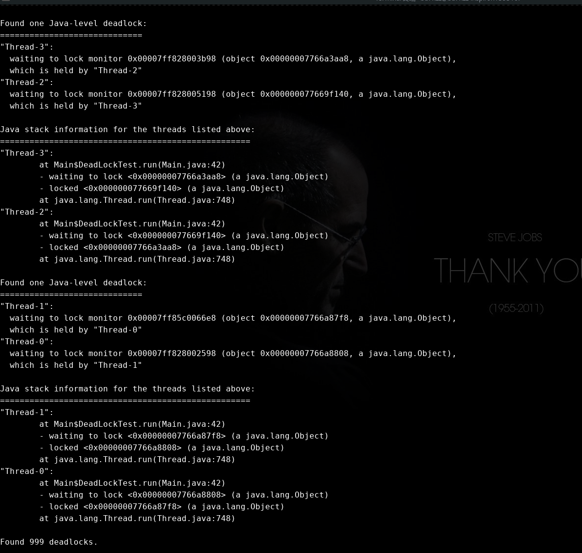new Thread(new DeadLockTest(locks[i], locks[i - 1])).start();