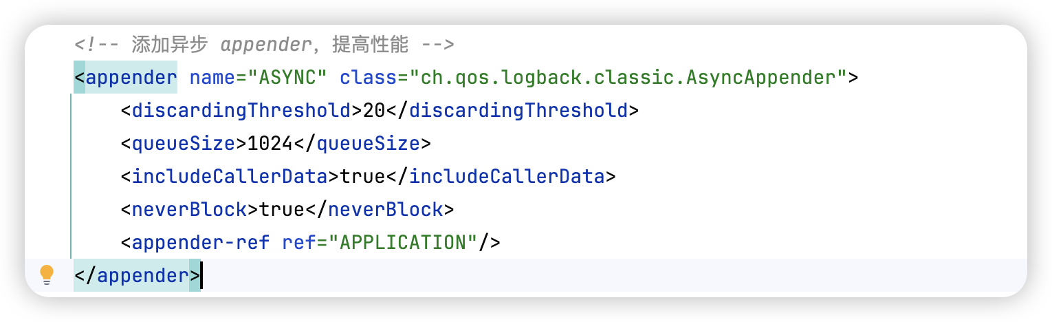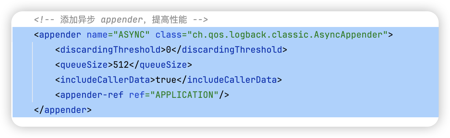 这时候基本定位到和日志打印有关。那我们看下我们的logback的配置,找到代码中的logback-spring.xml ,找到AsyncAppender的配置内容如下: