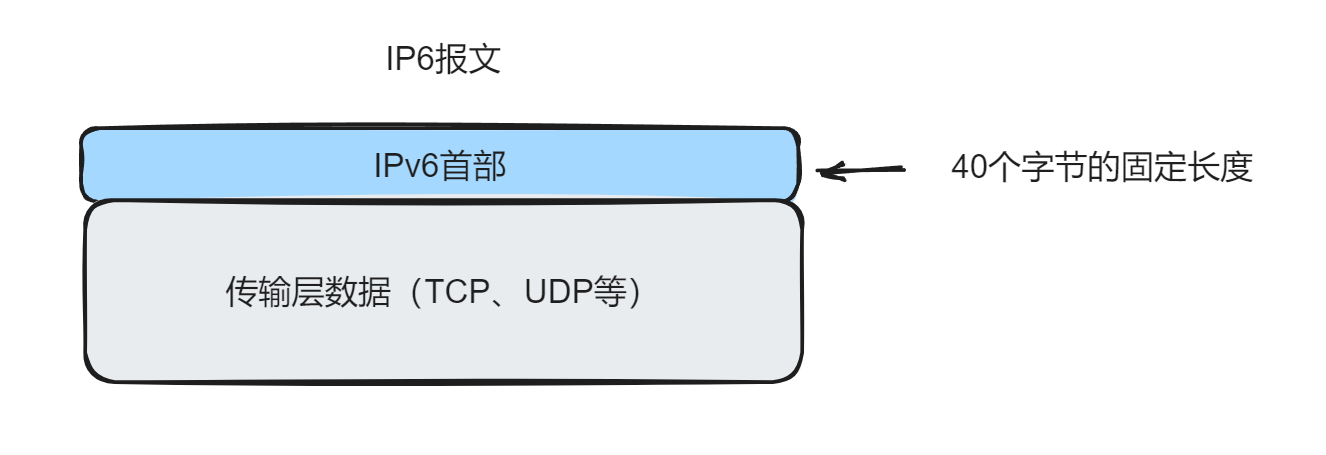 和IPv4不同的是,IPv6报文的首部是40个字节的固定长度。