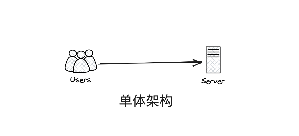 单体架构就是把所有的东西都部署在一起,比如一个论坛系统,他把用户、发帖、评论、点赞、搜索等等全都部署在一个应用中。甚至有的更加极致的,把数据都部署在同一个服务器上面。