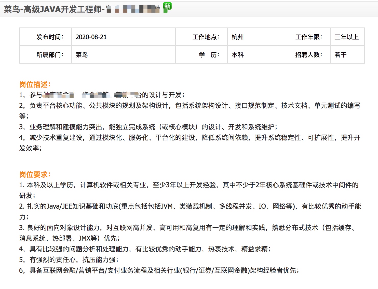 比如,我们到阿里巴巴的招聘网站上,随便找几个工程师岗位,看一下岗位要求: