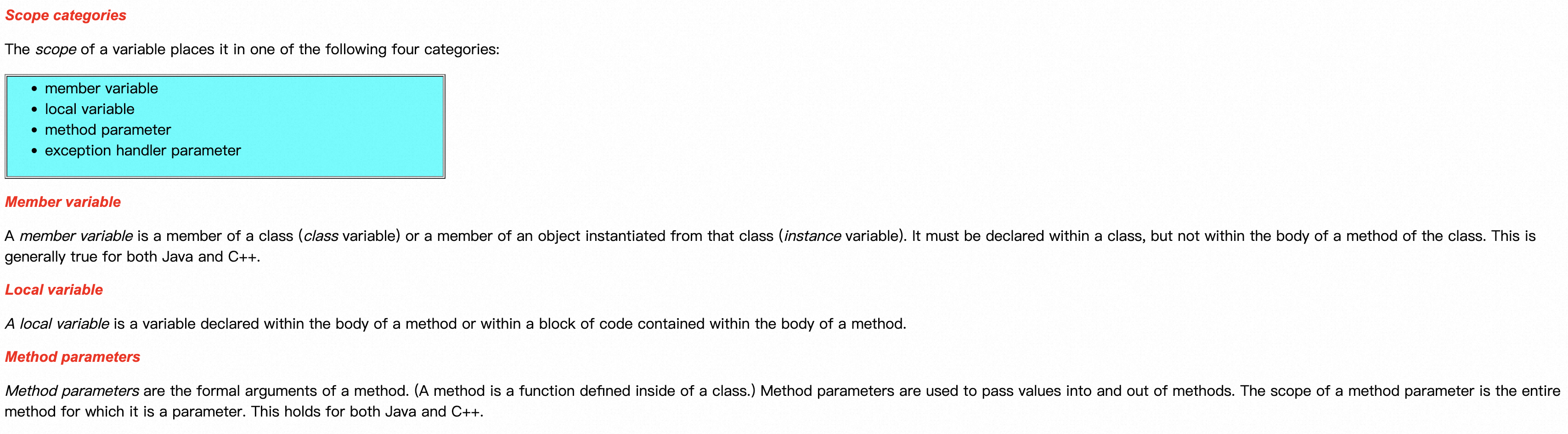 这里有关于成员变量、局部变量,以及成员变量中类变量和实例变量的定义。