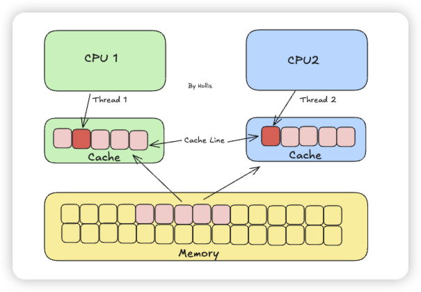 那么,当多个线程在不同的 CPU 核心上运行时,它们就可能访问物理上相邻(位于同一个缓存行内)但逻辑上独立(被不同线程修改)的变量。