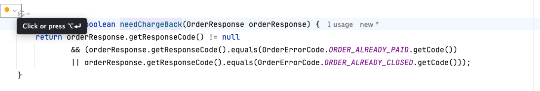 也就是说,如果orderFacadeService.pay返回的 responseCode 如果是ORDER_ALREADY_PAID或者ORDER_ALREADY_CLOSED就会执行退款。