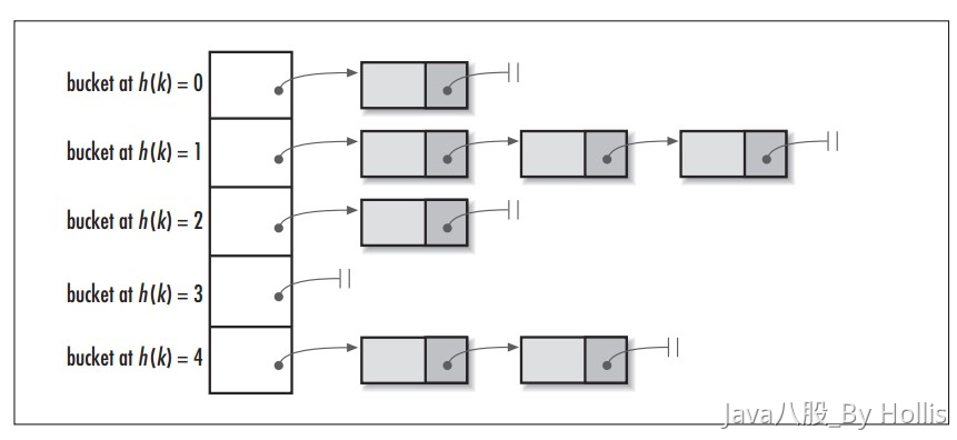 - 每个哈希桶(bucket)指向一个链表。当发生冲突时,新的元素将被添加到这个链表的末尾。