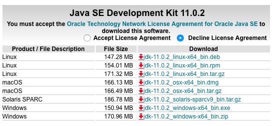 上图是Oracle官网下载JDK的指引,不同的操作系统需要下载对应的Java虚拟机。