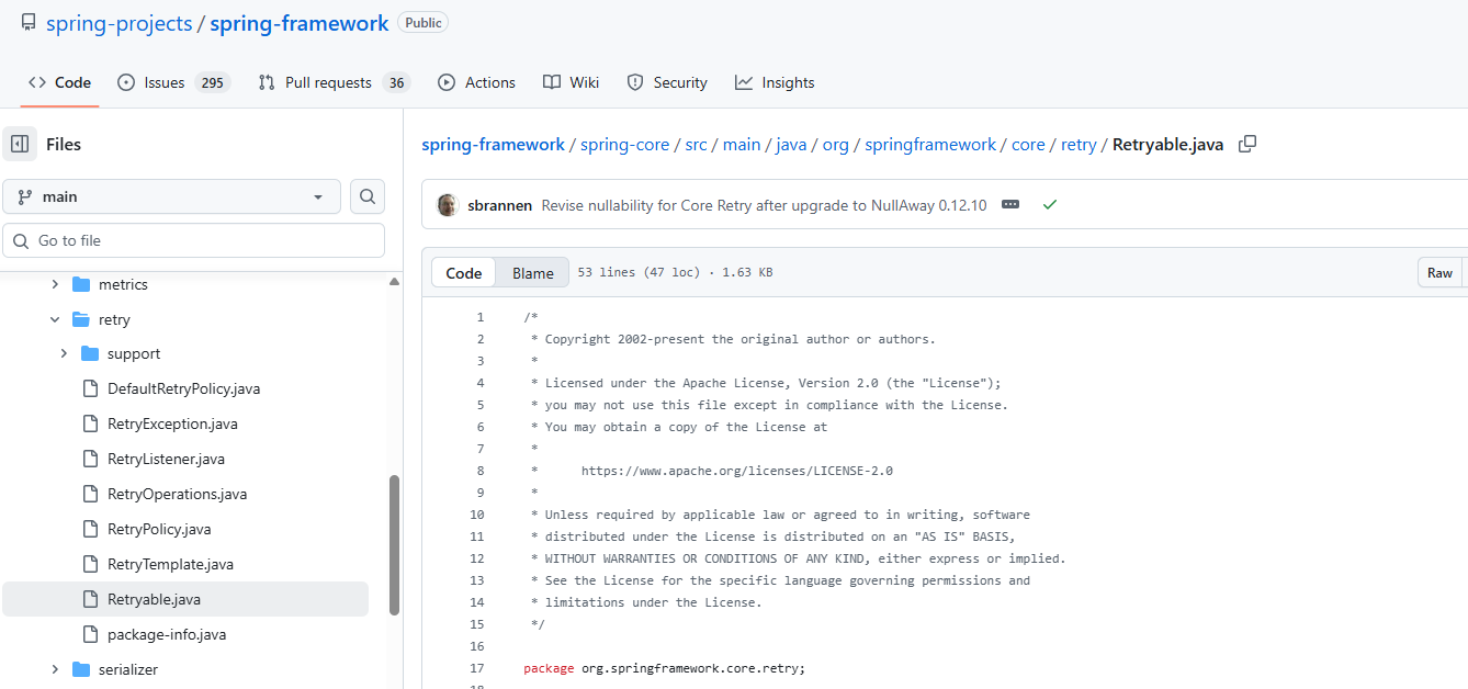 在之前,其实也有@Retryable注解,他提供的就是重试的能力,但是之前需要单独依赖spring-retry的包,在Spring 7中,这个注解变成内置的了,不用再单独依赖外部的包了。