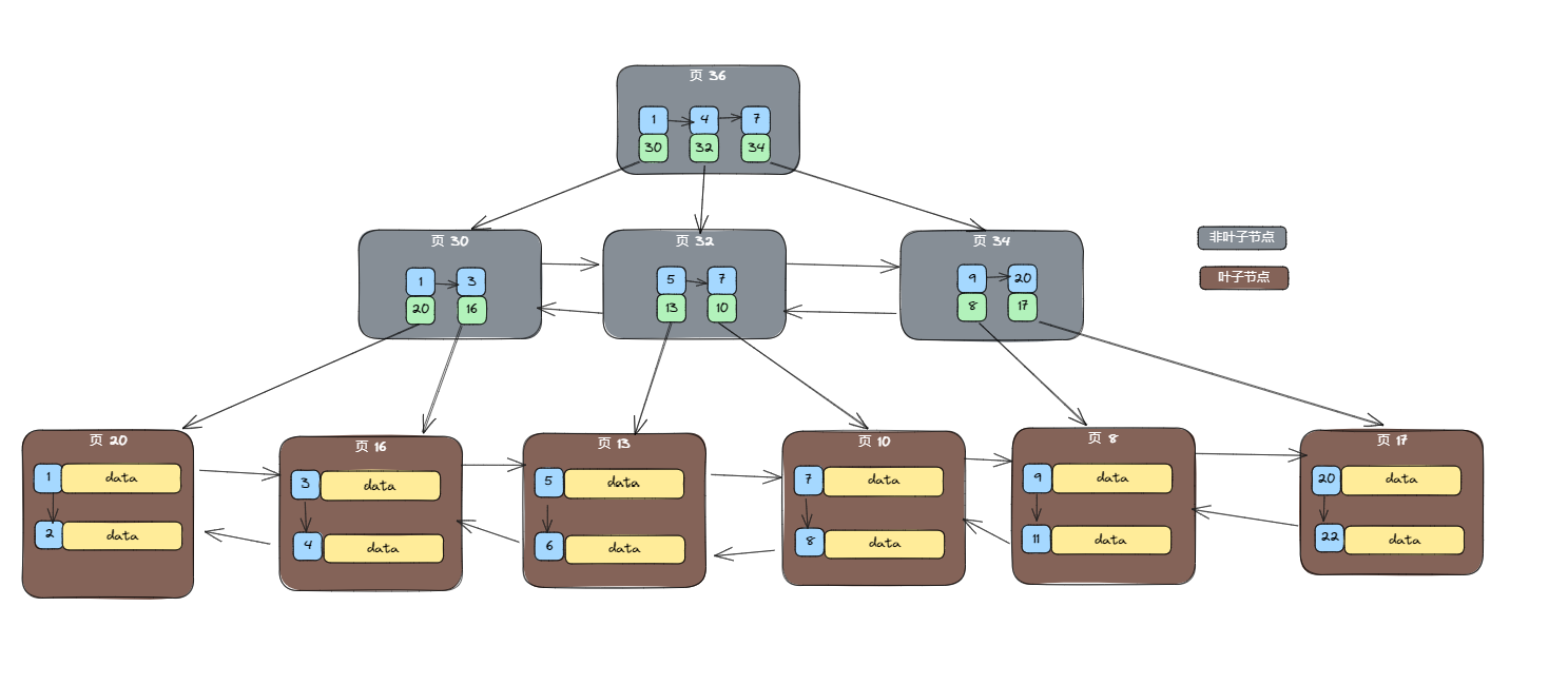 5. B+树的非叶子节点使用指针连接子节点,因此可以快速地支持范围查询和倒序查询。