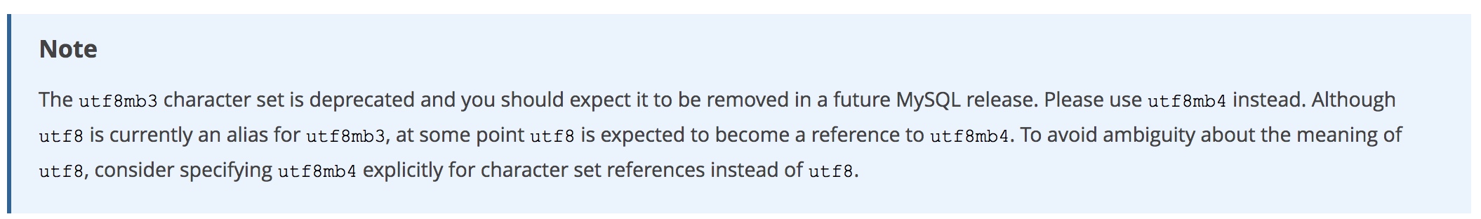 在MySQL官方文档中,介绍了支持的编码方式之后,还有一段醒目的提醒: